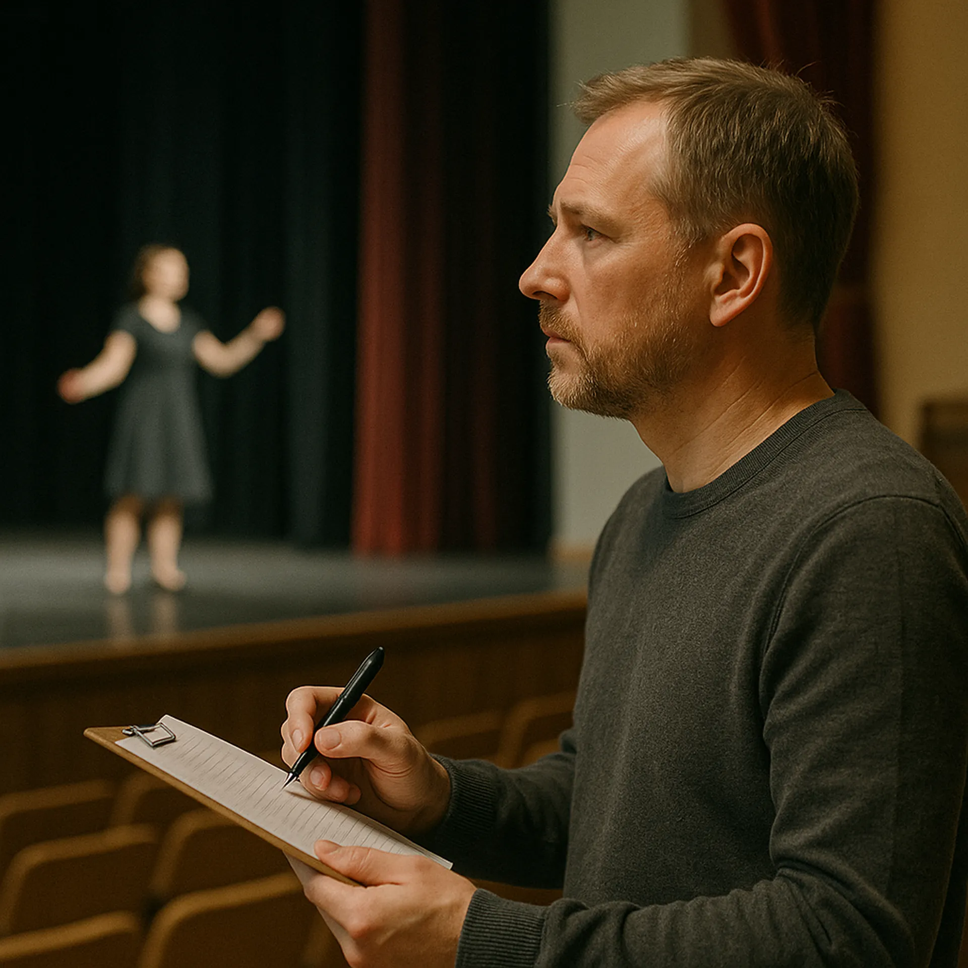 Театральный режиссёр – это ключевая фигура в мире театрального искусства. Это специалист, который превращает сценарий в живое действо на сцене, создает художественный образ спектакля и подчеркивает его визуальное и звуковое оформление. Режиссёр работает над интерпретацией сценария, выбором актёров, созданием художественного образа спектакля, его визуальным и звуковым оформлением. Он также отвечает за постановку сцен и движений актёров на сцене и координацию работы всех участников процесса.Чем занимается: